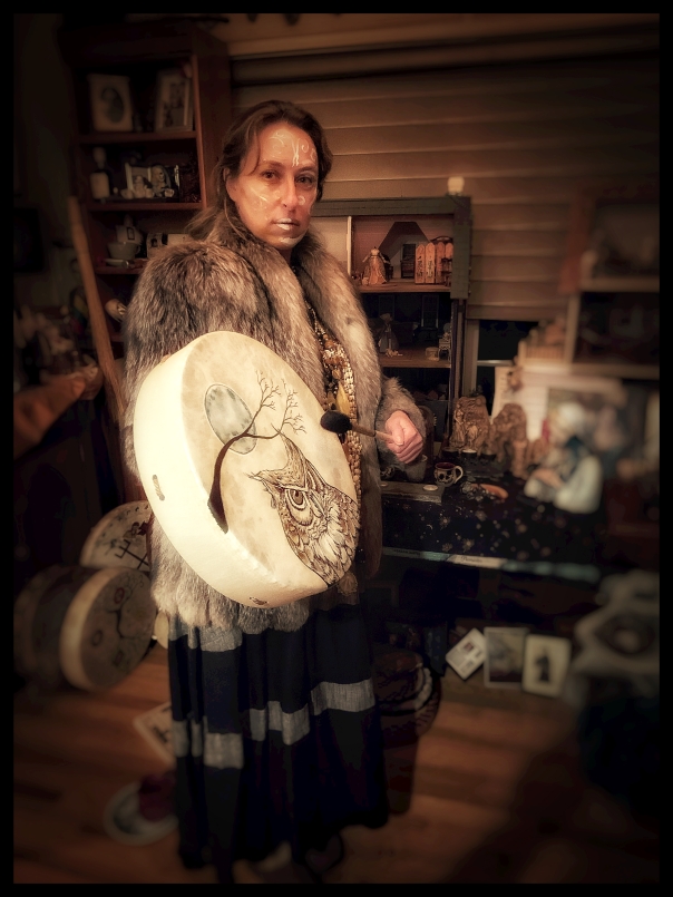 Tonight our household brought our Yuletide observances to a close with masking, drumming, and a mighty fire in honor of Perchta, and the divinities of winter. Afterwards we got the first snow of the season.