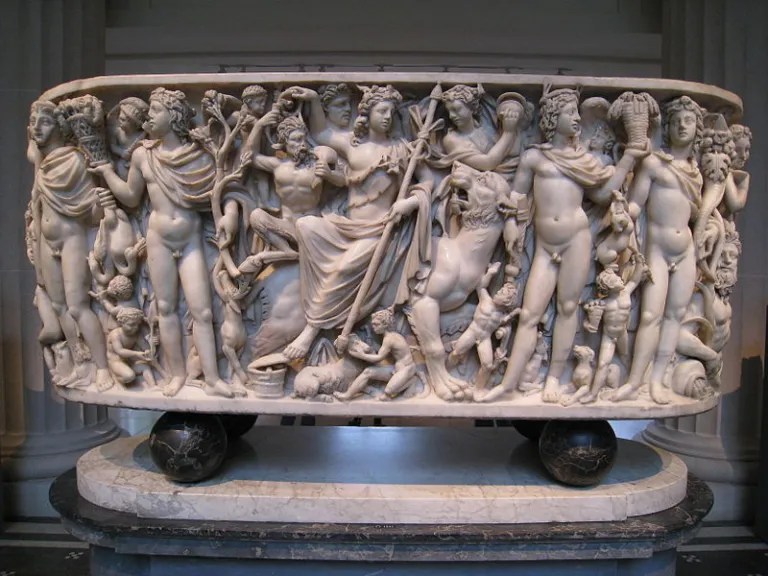 And illustrated it with this lovely Hellenistic sarcophagus depicting Dionysos surrounded by his retinue of raucous revelers: