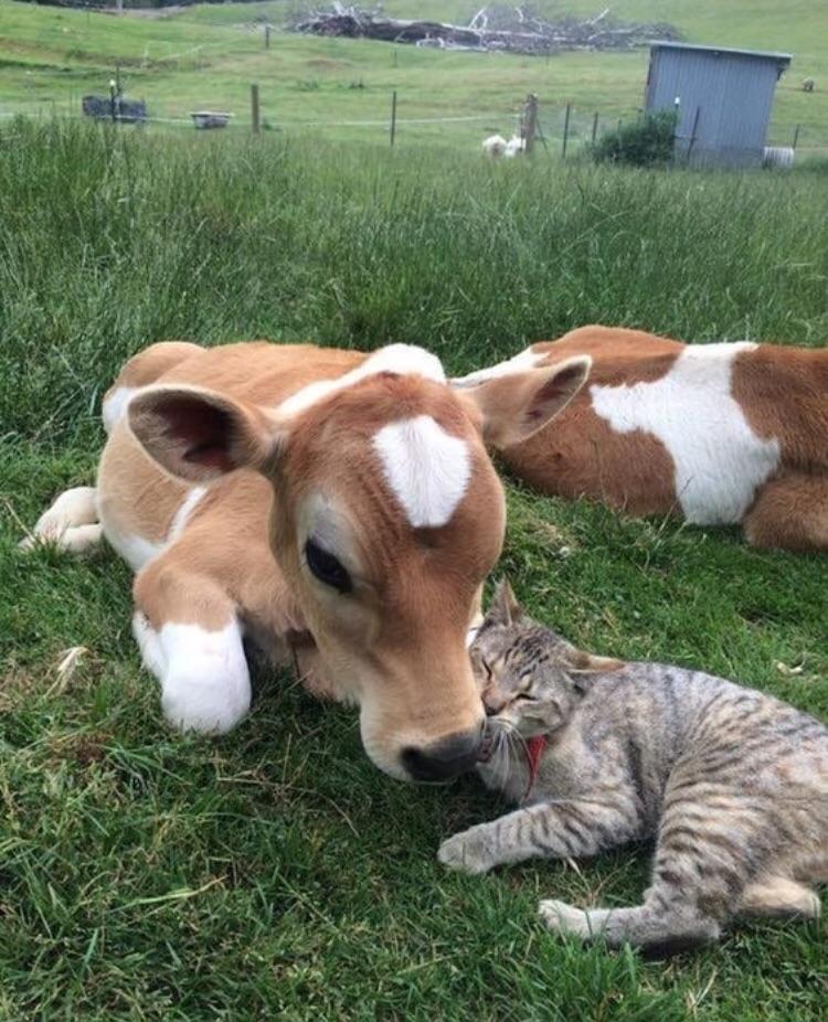 The calf marches on with calmly assured step.