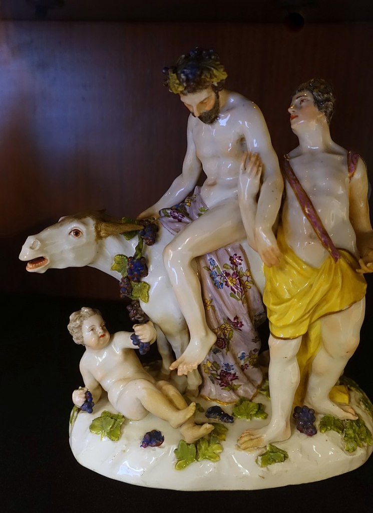 Thus Persephone spoke, and rose from her lustrous throne. She then hastened to the place where inside a secret chamber she had locked up Dionysos, the loud-roaring bull God, similar to the radiance of a rising Moon and shining with clothes and lovely wreaths. She took up the child in her arms, her most beautiful pride, awesome, fruit-bearing, endowed with the Graces’ beauty, and put him on the knees of penis-loving Aphrodite.